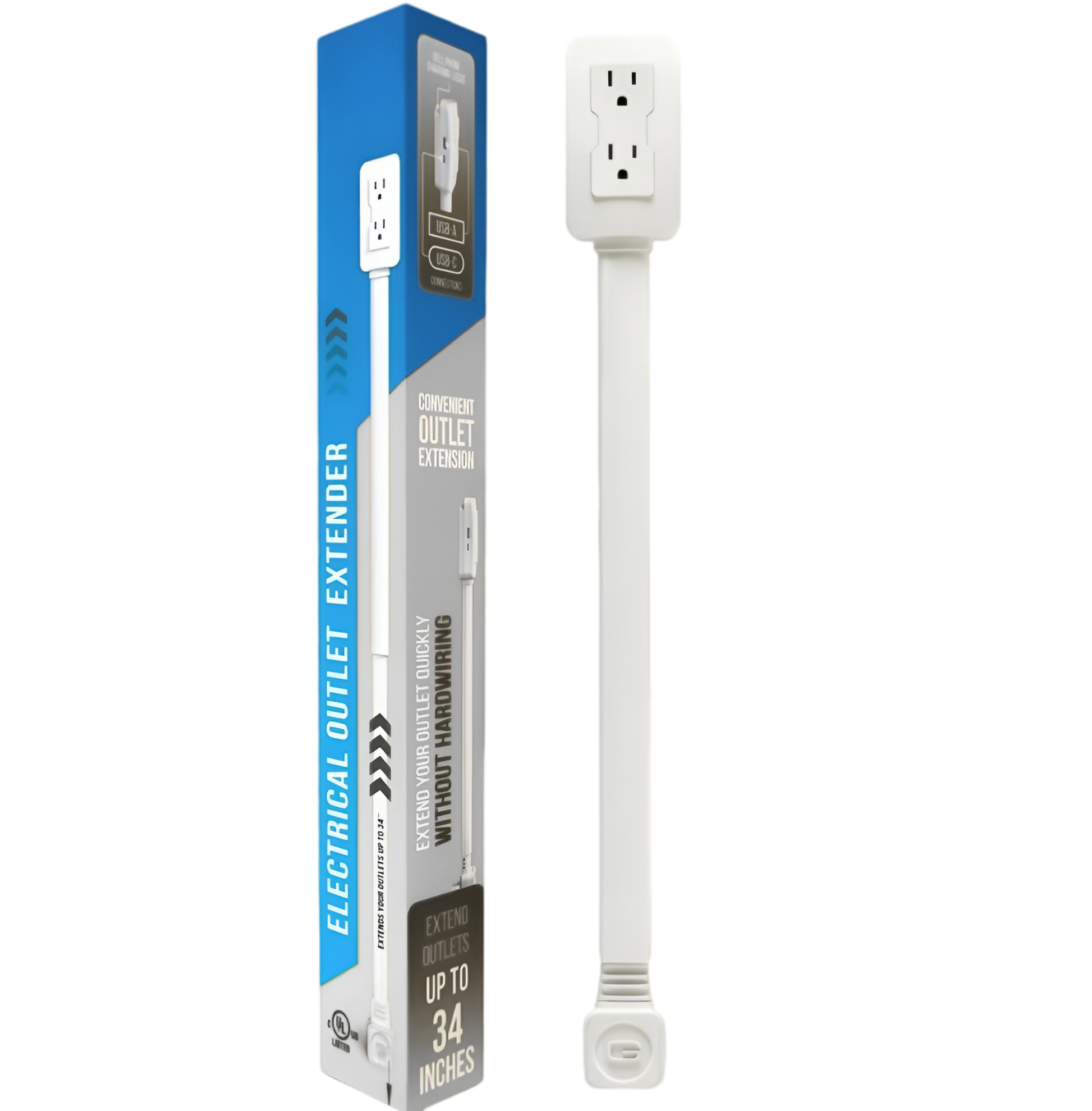 The zenplug Outlet Extender has a flexible arm that stretches 22–34 inches and bends any way you need. It turns hard-to-reach outlets into easy power spots with two AC plugs, fast USB-A and USB-C ports, and a phone holder. Safe, strong, and simple, it keeps your space neat and powered up.